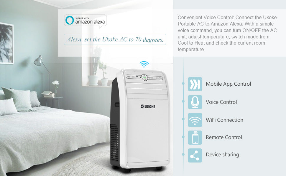 Of all the units we’ve used over the years, this 12k BTU model really impressed us with its ability to cool off a hot room lightning fast. We set it up quickly and painlessly and felt the room chill down in minutes. Better yet, it’s quieter than others with this capacity. Instead of feeling like you’re in a wind tunnel, the Ukoke unit purrs along at a reasonable 53 dB level. Turn it on and off with a start phone, tablet or have Alexa do it for you. When you need to relocate it to another room in the house, the four wheels on the bottom allow you to make it a one-man moving job.
