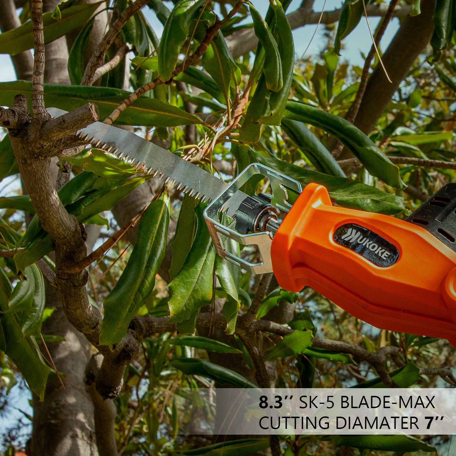 Being a nature enthusiast, Ukoke cordless tree pruning with an 8.3-inch saw blade is crucial for garden maintenance. It's easily operated without oil consumption and functions as a regular tree trimmer. All-in-one gardening tool feature that maintains the holistic health of your trees and plants. It prevents decaying, infected, or diseased parts from spreading to healthy branches and permits sunshine and airflow to access naturally.