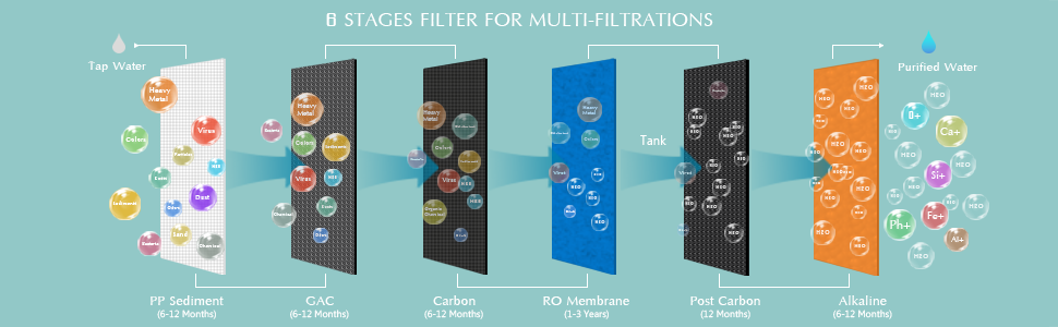 Our filter replacement schedule chart can be found in the manual provided with your unit. Stage 1-3 should be replaced every 6-12 months (depending on use) and stage 4-6 should be replaced every year.
