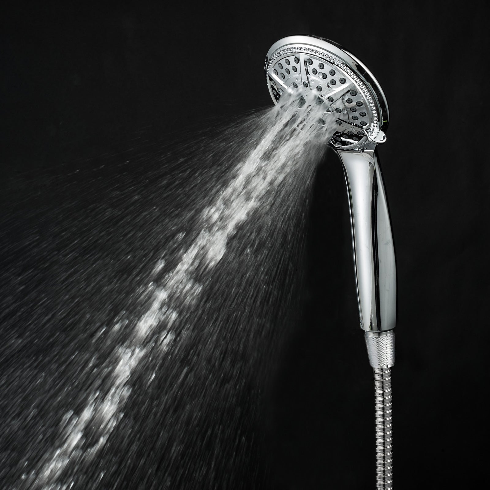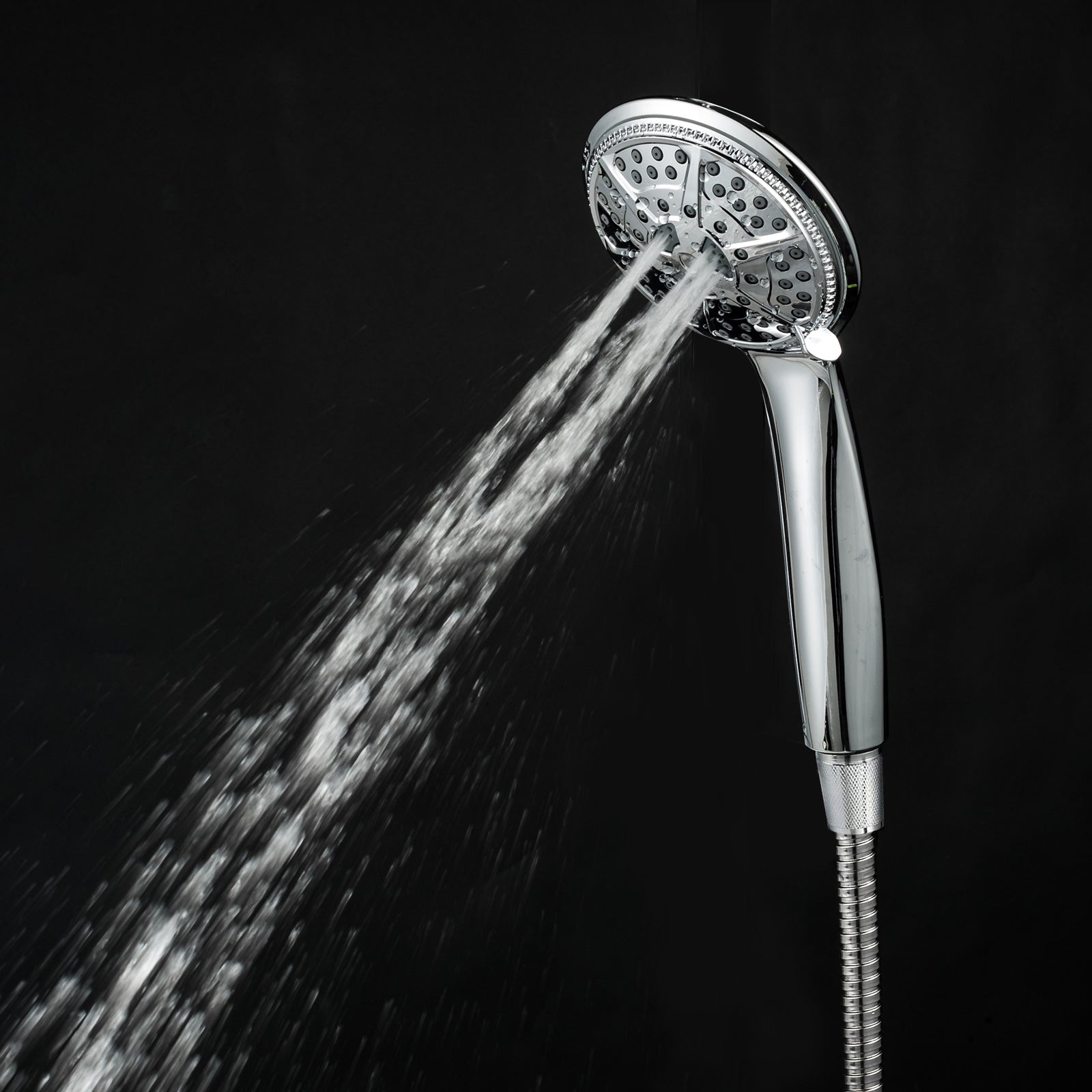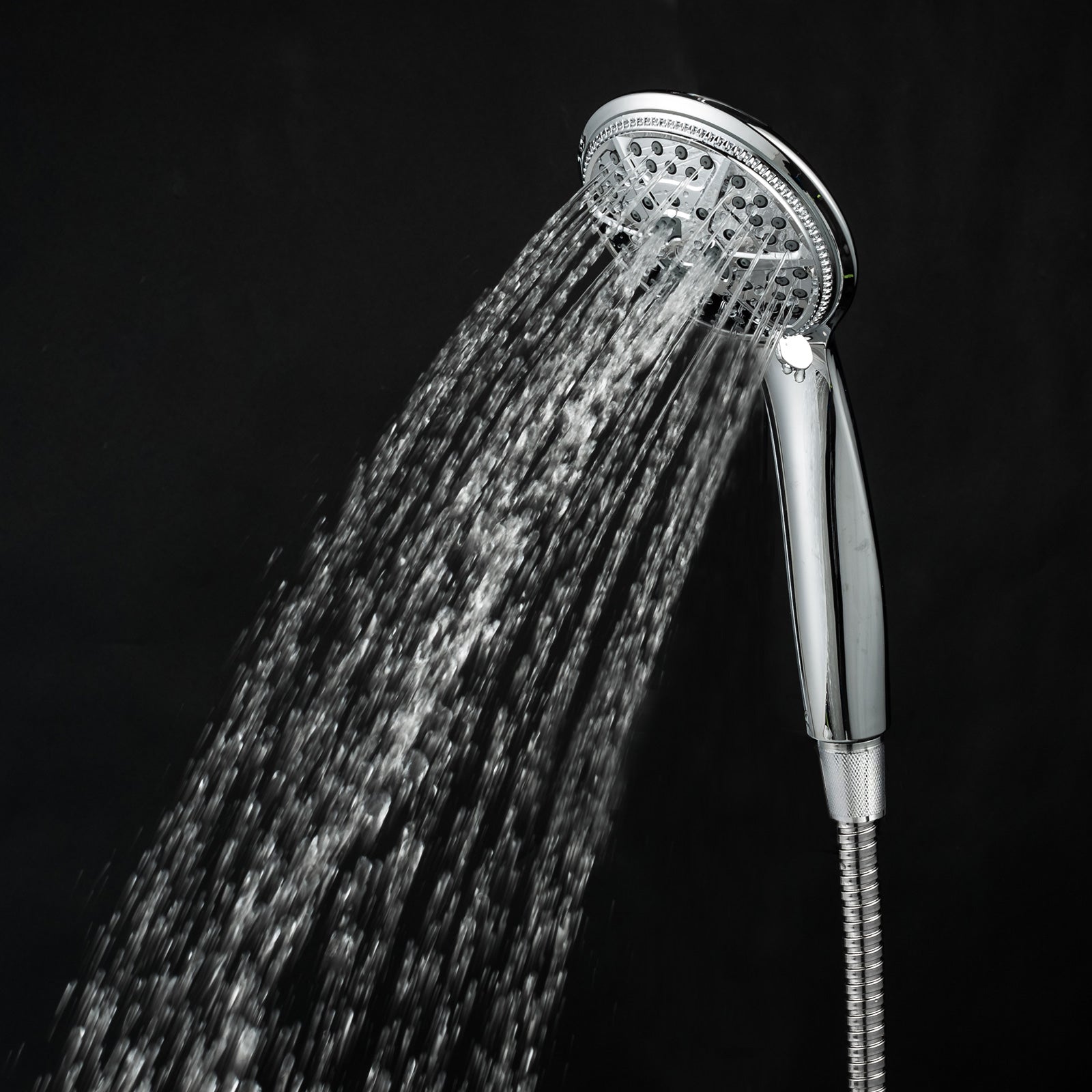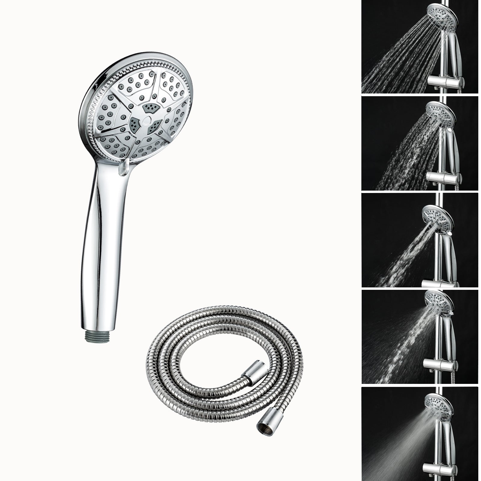 With 5 adjustable spray functions, choose among Power Rain, Massage, Stay-Warm Mist, Water-Saving Economy Rain and Pause. The high pressure water flow structure boosts water pressure to a comfortable level while providing consistent and powerful spray performance even under low water pressure. 5-ft super flexible stainless steel hose ensures no rusting or fading.